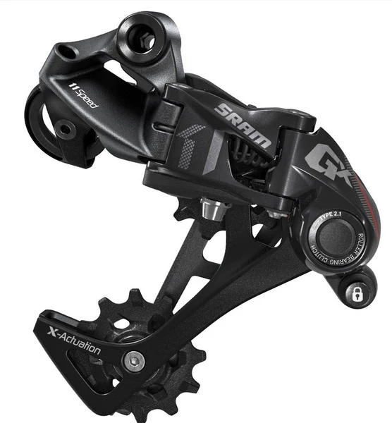 SRAM’s GX 1×11 X-Horizon rear derailleur is engineered for smooth, reliable shifting action—from the larger upper pulley offset to the 12-tooth X-Sync pulley wheels. By eliminating unwanted chain movement, this X-Horizon rear derailleur shifts faster, puts an end to ghost shifting, and reduces shift force and chain slap. And with Cage Lock technology, wheel removal and installation are easier than ever.