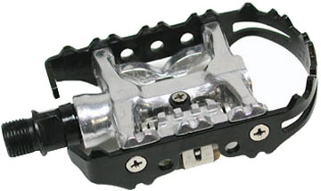 Sunlite’s MTB Single-Sided Clipless Pedals are perfect for people who who use 1 bike to do it all. On one side you’ve got regular flats that work with any shoes. This side is perfect for quick errands and short rides. The other side is SPD compatible for long commutes and weekend rides. We like them for beginning mountain bikers trying new stuff. Get to a sketchy section that you’re afraid to try clipped in, the aggressive tread keeps your foot in place while being able to put a foot down if you need to.