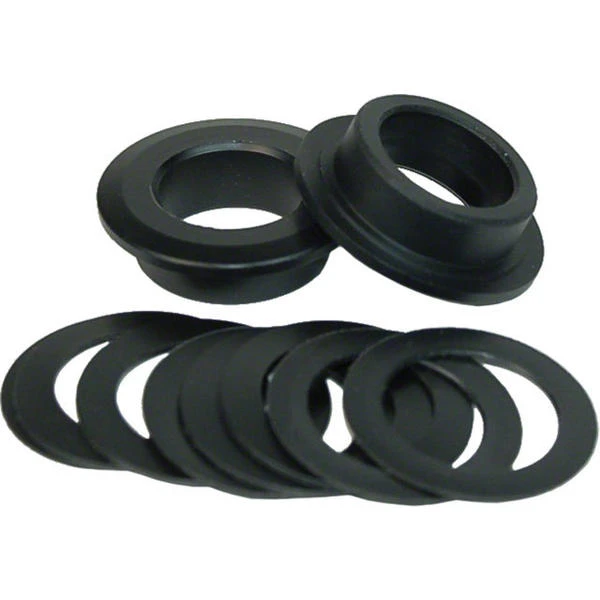 The Wheels Manufacturing 386 EVO Adapter for 22/24mm Spindle Cranks adapts SRAM/Truvativ cranks to 386EVO-standard frames. Simply tap the adapters into the 6806 bearing in the BB shell or cups, then install the cranks using the included spacers to adjust chainline or to take up any side-to-side movement in the crank. – Machined engineering-grade Delrin – 48g/pr Includes – (1) – 24mm ID adapter (for right-side) – (1) – 22mm ID adapter (for left-side) – (8) – 0.7mm spacers